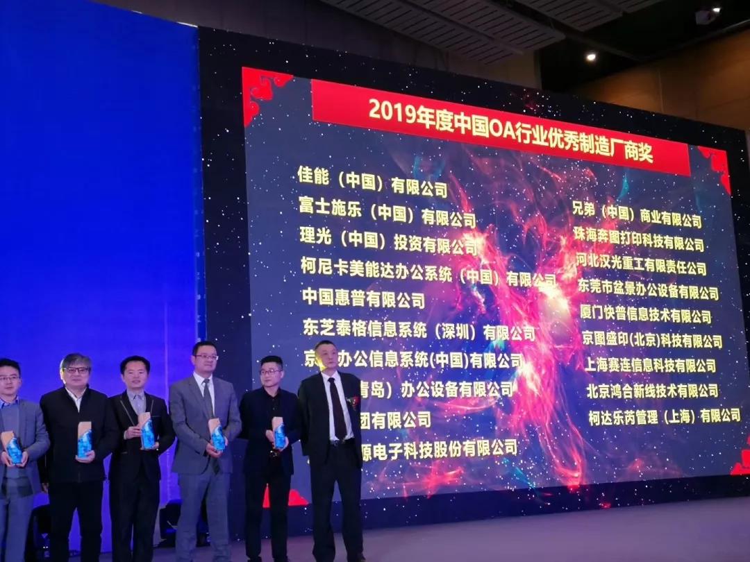 今年年會(huì)上,快普與佳能、施樂(lè)、理光、東芝、京瓷等國(guó)際知名品牌廠商一同獲得“2019年度中國(guó)OA行業(yè)優(yōu)秀制造廠商獎(jiǎng)”的榮譽(yù)!