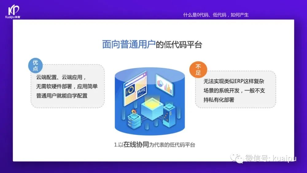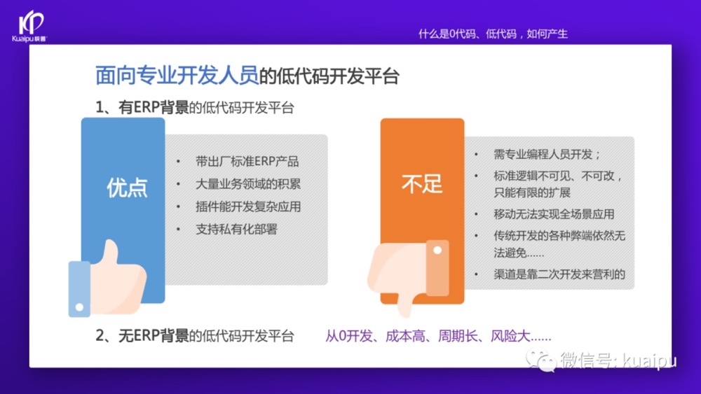 “這兩年快普已經(jīng)成功轉(zhuǎn)型為數(shù)字化平臺(tái)服務(wù)商,為客戶提供開(kāi)發(fā)平臺(tái)和解決方案(產(chǎn)品)等服務(wù)。我們先從開(kāi)發(fā)平臺(tái)說(shuō)起,目前市場(chǎng)上的零代碼、低代碼平臺(tái)大致可以分為這幾類: